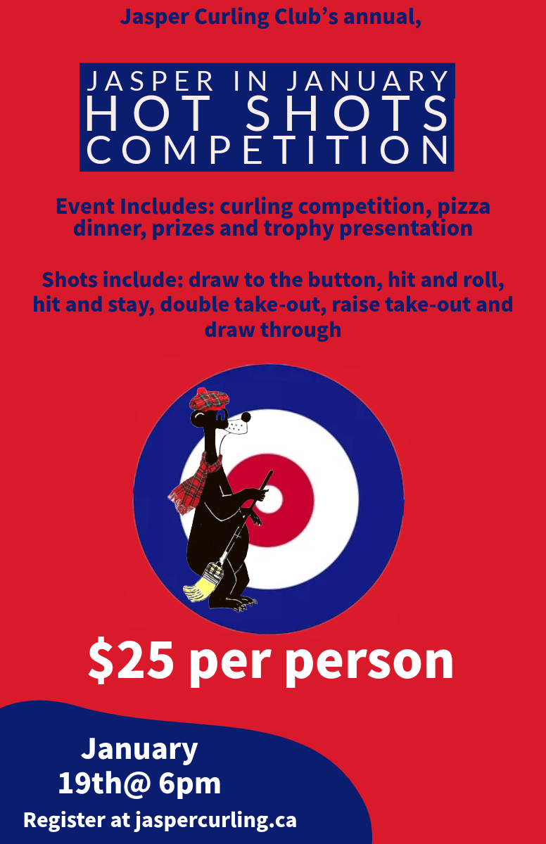 Blog GLOWPEN BONSPIEL Sign up JASPER IN JANUARY - HOT SHOTS COMPETITION $25 PER PERSONJANUARY 19TH, 6PM REGISTER HERE Events ctober 20th-23rd Jasper Curling Club Free Learn-to Curl Register Here Oct. 25, 2025, Click Registration for More Details * Oct. 25, 2025, Click Registration for More Details * Oct. 25, 2025, Click Registration for More Details * Register Now